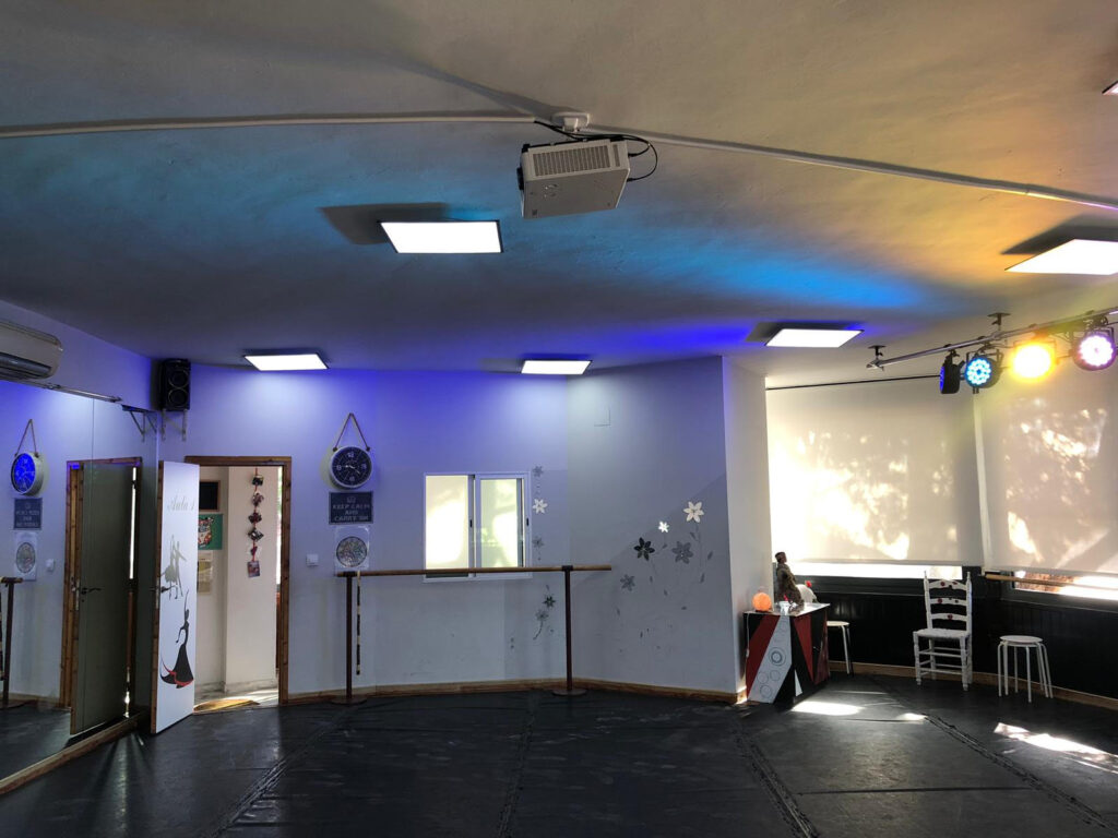 Amb aquest nou sistema d’il·luminació, les possibilitats creatives es multipliquen. Podem adaptar l’ambient lumínic segons el tipus d’activitat, creant escenes càlides i acollidores per a sessions de dansa introspectiva o terapèutica, o bé utilitzant colors vius i contrastats per activitats amb energia i moviment. La llum blanca neutra ens permet treballar amb claredat en formacions tècniques, mentre que els tons vermells, porpres o blaus creen atmosferes emocionals ideals per a improvisacions, sessions expressives o mostres internes. També podem jugar amb transicions suaus i canvis de color en directe per acompanyar el ritme d’una coreografia. Tot plegat ens permet millorar l’experiència dels participants, professionalitzar l’espai i obrir la porta a noves formes d’expressió artística.